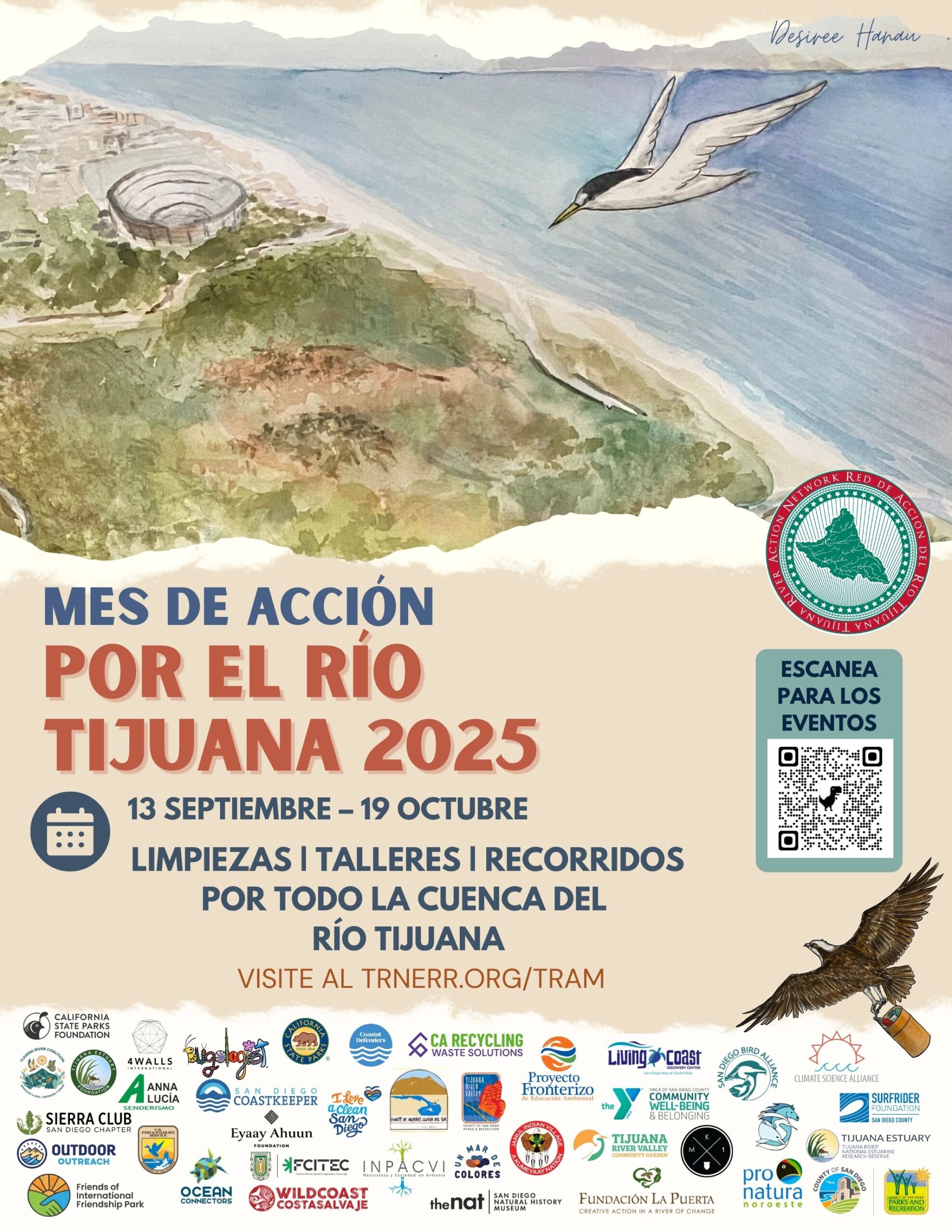 El mes de acción por el río Tijuana (TRAM) regresa con una variedad de limpiezas, eventos de restauración, talleres y más. Los eventos se llevarán a cabo en ambos lados de la frontera y cualquiera puede participar desde cualquier lado. Consulte el calendario a continuación para registrarse en todas las oportunidades de TRAM en septiembre y octubre.